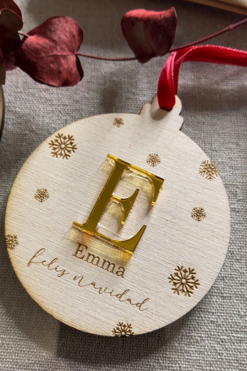 Celebra la navidad con nuestra bola de navidad personalizada. Nuestro modelo “Inicial”es el complemento perfecto para tus decoraciones navideñas.