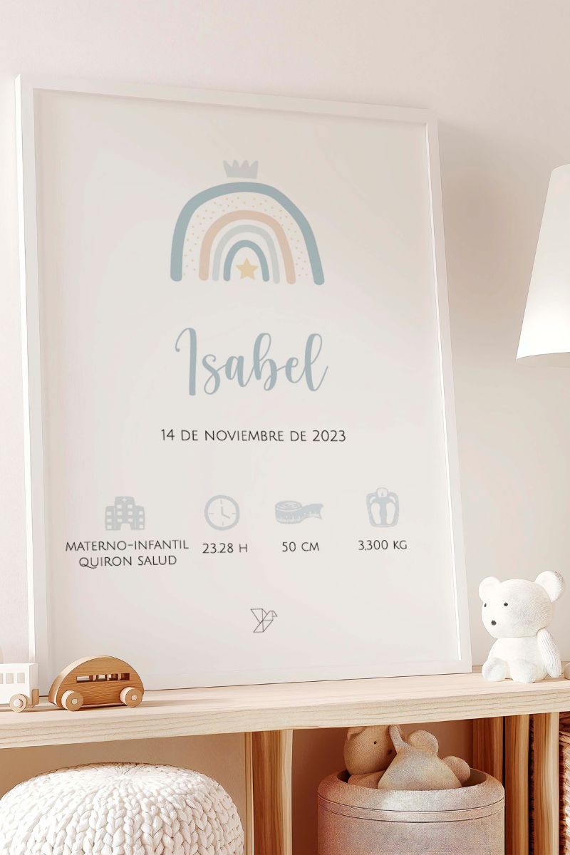 Celebra la llegada de tu bebé con nuestra lámina natalicia, diseñada para mostrar los momentos más especiales de su nacimiento. La lámina incluye los datos más importantes: nombre, fecha, hospital, hora, medida y peso, creando un recuerdo único que podrás atesorar para siempre.