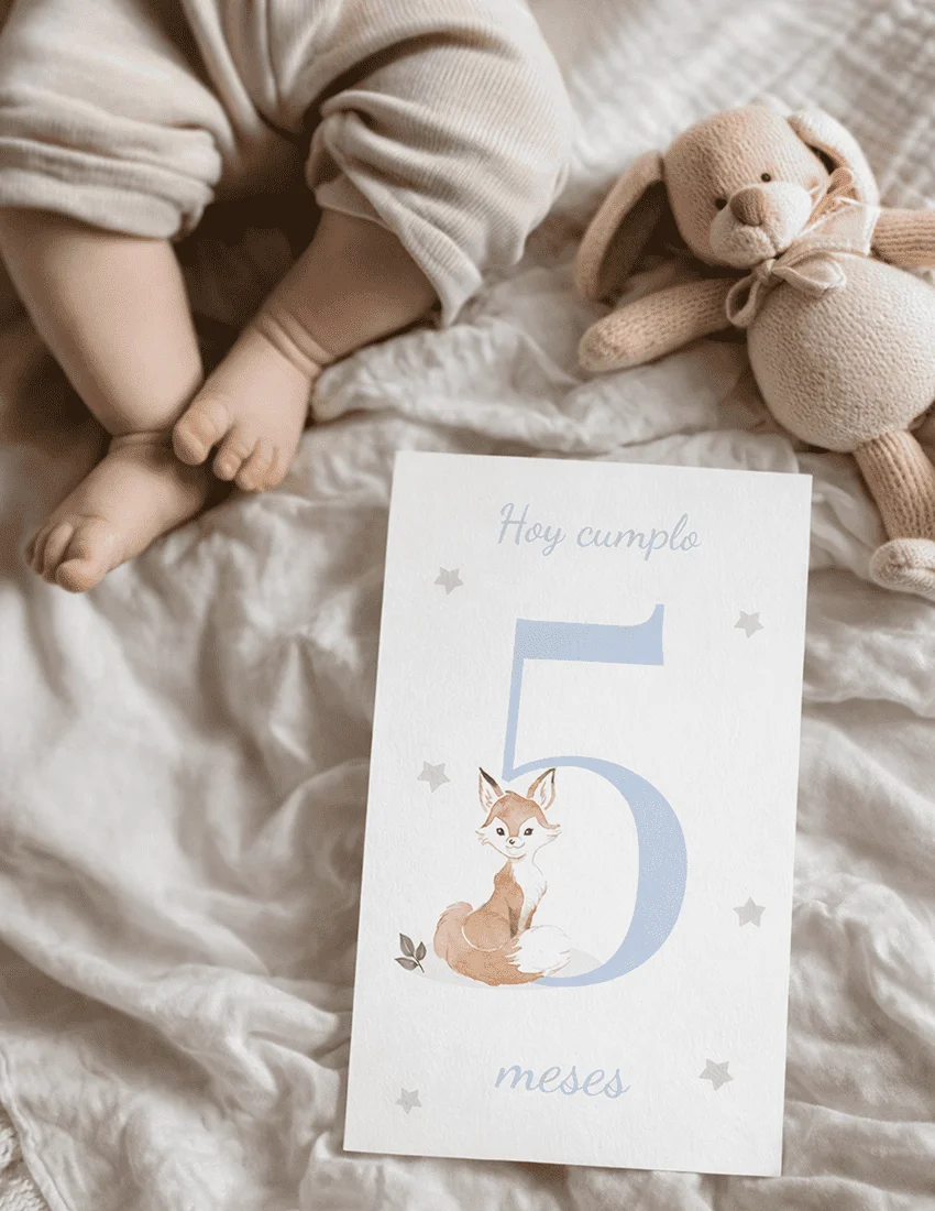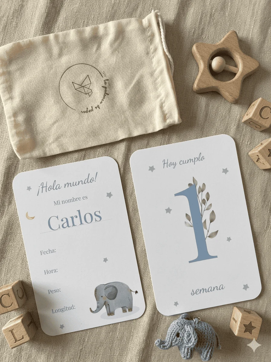 Cada tarjeta cuenta con un diseño atractivo. Simplemente elige la tarjeta correspondiente al mes y haz la foto de tu bebé. Así podrás crear un álbum fotográfico que podrás compartir y revivir en los años venideros.